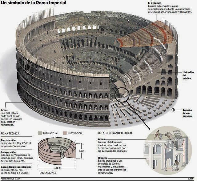 | Partes del coliseo romano. Pincha en la imagen para ampliar. |